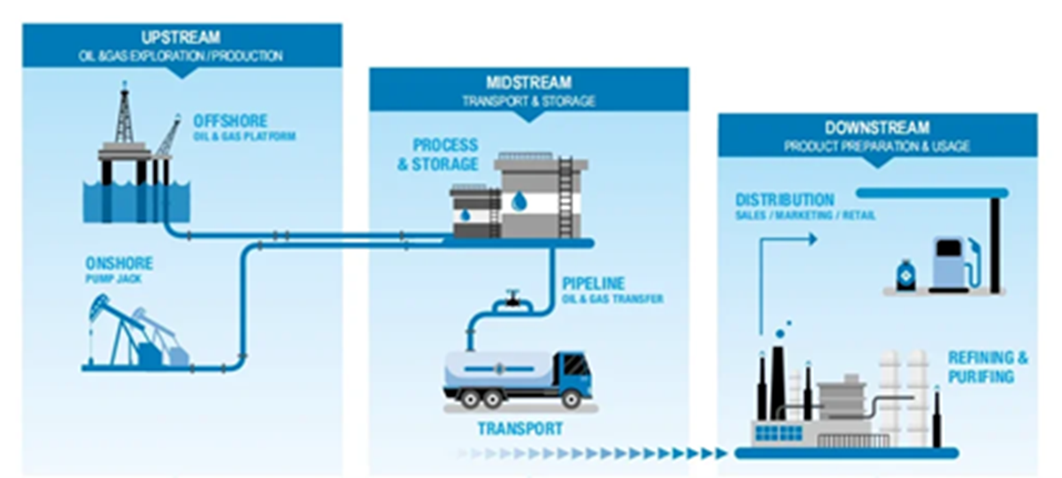 Ngành công nghiệp dầu mỏ bao gồm ba lĩnh vực chính: thượng nguồn,
